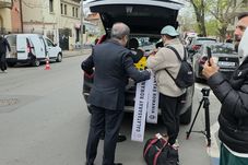 Mihai Stoica, alături de fiica Teodora, a ajuns la biserica Elefterie la ora 9.30 și a intrat rapid în lăcașul de cult.