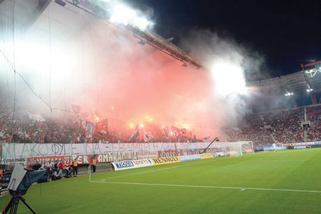 Este întrebarea pe care, invariabil, ți-o pui la un meci al lui Olympiacos. „Au «muniție» cât pentru zece meciuri, nu-ți face griji!”, apare lămuritor un jurnalist grec. Zâmbește, așa cum face probabil de fiecare dată când vede fețele nelămurite ale celor aflați la primul meci pe „Georgios Karaiskakis”. Tot ziaristul elen este cel care nu recomandă o comparație între un meci al unei echipe de club și unul al naționalei. Chiar dacă ambele se joacă pe un „Karaiskakis” cu o acustică perfectă: „Aici există acești 4.000 de oameni din peluză, ei fac atmosfera! La națională nu îi ai și, automat, nici presiunea nu este la fel de puternică”. Tricolorii pot aștepta fără emoții întâlnirea cu fanii eleni. Vocea de sub valul de fum va fi înlocuită de oameni nedezlipiți de scaune, iar pentru torțe se vor găsi, cu siguranță, câteva vuvuzele enervante.