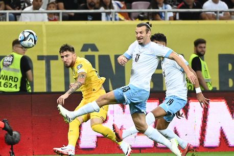 Fotbalistii romani la startul meciului de fotbal dintre Romania si Israel, din cadrul preliminariilor Campionatului European 2024, desfasurat pe Arena Nationala, sambata 9 septembrie 2023. © FOTO:Razvan Pasarica/SPORT PICTURES