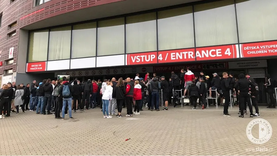 Meciul cu Plzen, formația pe pe locul doi, s-a terminat la egalitate: 0-0. Până la finalul sezonului regulat mai sunt două partide, iar Slavia are opt puncte avans. La această partidă, fanii echipei gazdă au avut voie să intre pe stadion, dar într-un număr limitat. Chiar și așa a fost coadă la intrarea în arenă.