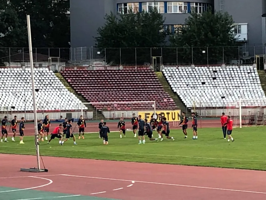 Ședința de pregătire ar fi trebuit să înceapă la ora 19:45, dar jucătorii erau pe teren încă de la ora 19:30.