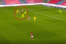 George Pușcaș preferă să cadă, iar norvegienii declanșează faza primului gol cu România