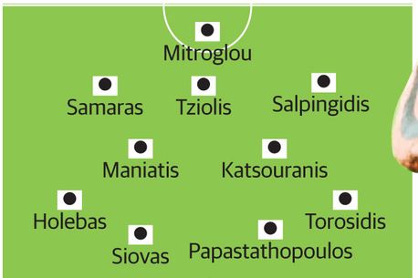 Singurul mare semn de întrebare pe care îl are în aceste zile Fernando Santos este legat de linia mediană, acolo unde are trei fotbaliști care se luptă pe un singur post. Cu Maniatis și Katsouranis bătuți în cuie, selecționerul grec mai are de ales un singur mijlocaș central. Lupta pentru acest post vacant este între simbolul Karagounis, uriașul Tziolis și tânărul de 24 de ani, Andreas Samaris. Jurnaliștii eleni încearcă să anticipeze mișcările lui Santos: „Pe Karagounis nu îl poți privi niciodată ca pe o rezervă, deși în ultima perioadă a jucat tot mai puțin. Dacă nu va fi titular, atunci în mod cert va fi prima schimbare pe care o va face antrenorul nostru”.