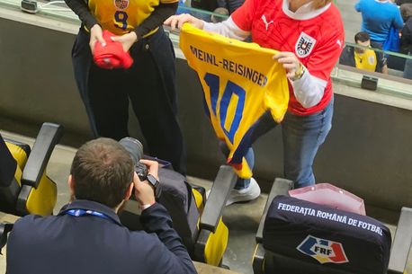 Oana Țoiu a primit un tricou al naționalei Austriei, pe spatele căruia era inscripționat numele ei, dar și numărul 10. De partea cealaltă, Ministrului Federal pentru Afaceri Europene și Internaționale al Austriei a primit un tricou al echipei naționale a României, pe spatele căruia era inscripționat numele și numărul 10.