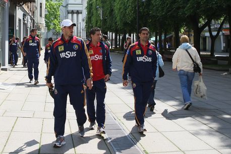 Ziua de ieri a început pentru echipa națională cu clasica plimbare prin oraș. Strada de promenadă din centrul orașului Kaunas i-a primit pe tricolori nepăsătoare, niciun tricolor nefiind interesat de posesorii treningurilor albastre.