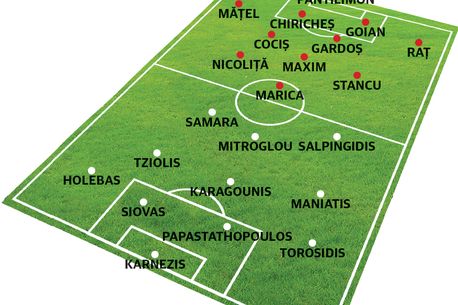 Așa cum a anunțat imediat după meci, Pițurcă îl va folosi la București pe Alexandru Maxim. Jucătorul lui VfB Stuttgart va intra ca al doilea vârf, iar Bogdan Stancu, omul care a jucat pe acest post în Grecia, va fi mutat în banda stângă. „Motanul” a mai jucat pe această poziție și în meciurile din faza grupelor, unul dintre acestea fiind succesul cu Turcia, de la Istanbul (0-1). Gardoș și Cociș vor asigura zona centrală de la mijlocul terenului pentru că, în ciuda faptului că îi are pe Bourceanu și pe Lazăr suspendați, selecționerul nu va renunța la sistemul 4-2-3-1.