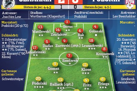 „Am două inimi, una germană și una poloneză. Am o familie numeroasă în Polonia, unele dintre rudele mele au fost prezente și la meci. Nu am avut cum să îmi celebrez reușitele din motive ce țin de respect”, și-a explicat Podolski bucuria reținută de la cele două goluri marcate împotriva conaționalilor săi.