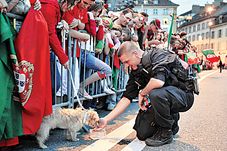Euro-polițiști! Un reprezentant al forțelor de ordine hrănește un câine al unui portughez