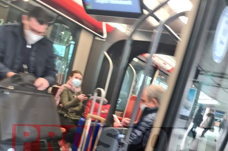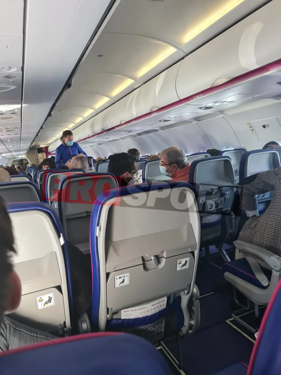 Răzvan Burleanu și Mihai Stoichiță, în autobuzul care transportă pasagerii la poarta de debarcare. Sursă foto: ProSport.