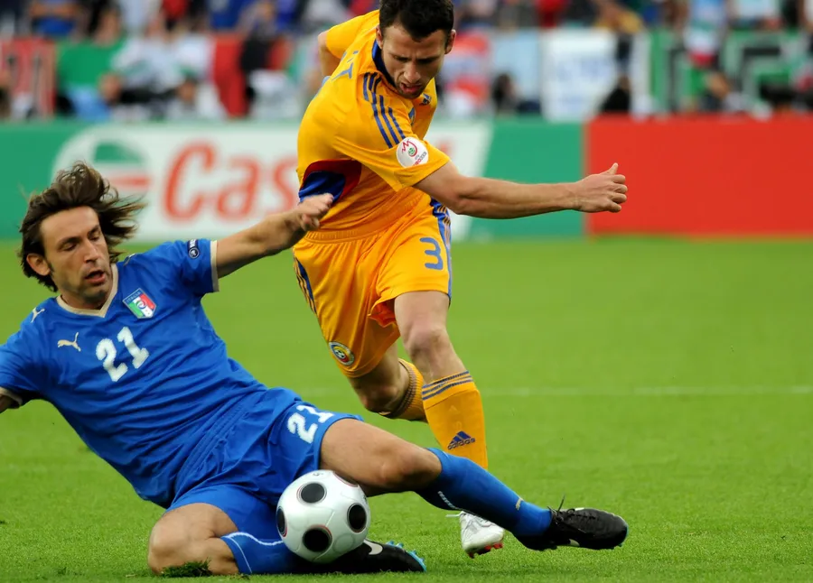 Razvan Rat in duel cu Andrea Pirlo. FOTO: SportPictures