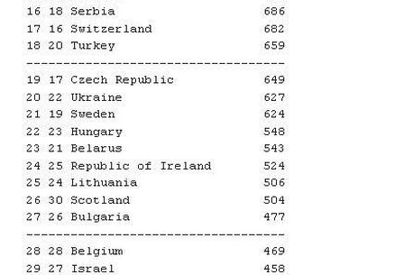 Belgia, Israel, Irlanda de Nord, Austria, Polonia, Albania, Bosnia