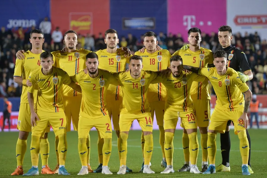 Jucatorii echipei Romania U21 pozeaza inainte de inceperea meciului de fotbal contra selectionatei Irlandei de Nord U21 din preliminariile EURO 2021, disputat pe stadionul Anghel Iordanescu din Voluntari, luni, 14 octombrie 2019. ALEXANDRU DOBRE / MEDIAFAX FOTO