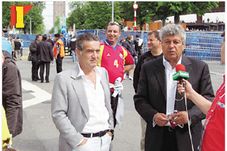 Totuși, publicul român s-a ridicat la înălțime, trăind intens fiecare fază importantă. Și nu a fost cazul oricărui român, chiar și VIP-urile din țara noastră prezente pe stadionul Letzigrund au încurajat echipa și au sărit de bucurie la golul marcat de Mutu, dar și-au pus mâinile în cap la ratarea acelui penalty tot de către decarul formației noastre. Mircea Lucescu a urmărit partida alături de Gigi Becali (foto 1) și Giovani Becali, iar Gheorghe Hagi a stat tot timpul lângă fostul său coleg de cameră de la Steaua și națională, Miodrag Belodedici. La tribuna oficială a fost prezent și Ion Țiriac, Marius Vizer împreună cu Cristi Borcea, dar și fostul antrenor al Stelei, Cosmin Olăroiu.