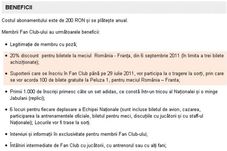 Puțin peste o mie de români s-au înscris în Fan Clubul echipei naționale în cele aproape opt luni de la lansarea acestuia. Entuziasmul de început al federalilor a ținut însă puțin, iar acum, la peste jumătate de an de la începutul proiectului, pe site-ul oficial, la secțiunea în care sunt prezentate beneficiile membrilor, apar informații despre facilitățile oferite la România – Franța. „20 la sută discount pentru biletele la meciul România – Franța, din 6 septembrie 2011 (în limita a trei bilete achiziționate)” sau „Suporterii care se înscriu în Fan Club până pe 29 iulie vor participa la o tragere la sorți prin care se vor acorda 100 de bilete gratuite la Peluza 1 pentru România – Franța”.