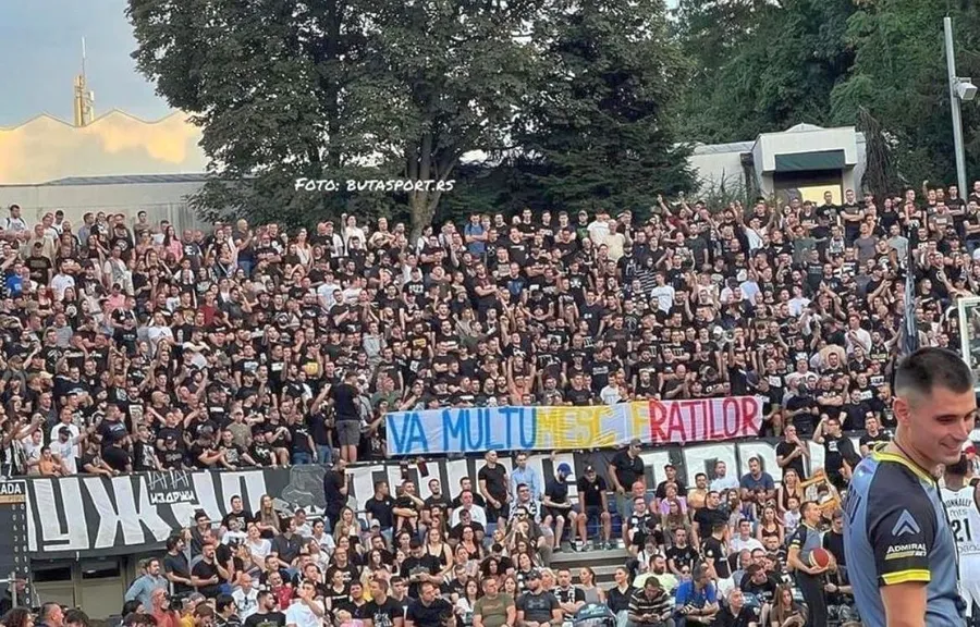 În cursul zilei de miercuri, în timpul unui meci amical de baschet între Partizan Belgrad și Fuenlabrada, suporterii sârbi au afișat un banner, în culorile steagului României.