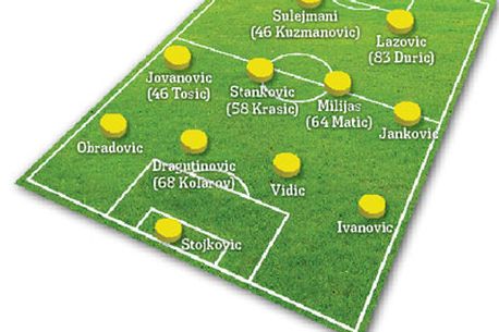 Stankovic e căpitanul și dispecerul Serbiei, un conducător de joc adevărat și modern, care stă mai retras, în genul lui Andrea Pirlo. El filtrează tot și greșește foarte rar. Lângă el, pe post de jandarm, îl are pe Milijas, care, disciplinat și ascultător, preferă să-i paseze cuminte interistului. Extremele Jankovic și Jovanovic sunt total diferite. Bosko e punctul fix al lui Antic: solid, tehnic, stă lipit de banda dreaptă și centrează perfect. Milan, omul lui Bölöni la Standard, e arma letală a Serbiei. Se transformă mereu în al treilea vârf, se strecoară mereu din stânga și, cu Cipru cel puțin, i-a ieșit perfect: un gol și o pasă de gol. Krasic și Tosic, intrați în partea secundă, nu trebuie neglijați.