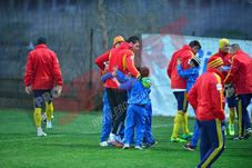 De notat și faptul că directorul tehnic, Anghel Iordănescu, a urmărit și el din tribună ședința de pregătire, dar n-a rezistat mai mult de 30 de minute din cauza frigului.