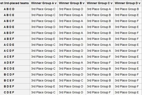 *În funcție de grupele care vor oferi cele mai bune patru locuri 3 la Euro 2016, acestea vor întâlni în optimi următoarele echipe: