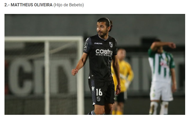 Clasamentul este continuat de câteva nume surpriză, iar mulți cititorii au spus că nici măcar nu au știu că băieții acestor jucători legendari s-au apucat de fotbal. Pe locul doi în acestă ierarhie este Mattheus Oliveira. Fiul lui Bebeto, fost campion mondial cu Brazilia, are contract cu Sporting Lisabona, dar încă nu și-a arătat potențialul la echipele unde a fost împrumutat. Rămâne de văzut dacă va reuși să impună în primul 11 de la Sporting Lisabona.