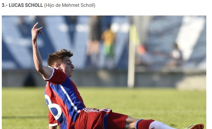 Podiumul este încheiat de Lucas Scholl, fiul internaționalului german Mehmet Scholl, considerat unul dintre jucătorii foarte talentați de la echipa a doua a lui Bayern Munchen.