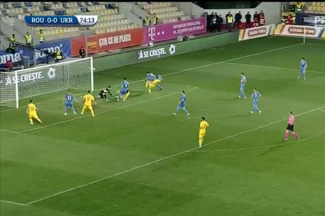 Aflat în centru, Dennis Man a scos mingea în partea dreaptă, iar Boboc a centrat pentru Olimpiu Moruțan, care a „ciupit” mingea din fața portarului Ucrainei și a marcat.