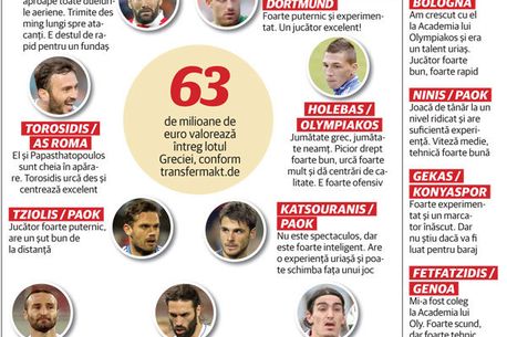 Portarul grec de la Năvodari, Leonidas Panagopoulos, a analizat pentru ProSport cei mai importanți 17 jucători ai Greciei.