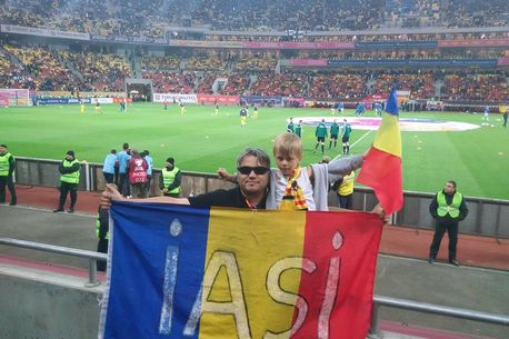 Puștiul Andrei Pancu și tatăl său la un alt meci al României