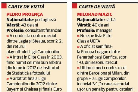 Milorad Mazic, în schimb, s-a întâlnit în dese rânduri cu românii. Sârbul a condus Grasshoppers – Steaua, în 2010, când echipa din Ghencea s-a calificat în grupele Europa League, dar și meciul european al Vasluiului cu Lazio (0-0) din 2011. Cel mai bun „central” al sârbilor a condus chiar și două partide din Liga I: FC Timișoara – Dinamo 2-0, în 2009, și Steaua – Vaslui 0-1, în 2012.
