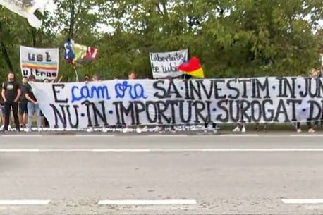 Desigur, nu s-au limitat doar la un banner. Au avut și scandări precum „Centre de copii și juniori, nu import de jucători” și „Vrem națională cu sânge românesc, sânge românesc, sânge românesc”.