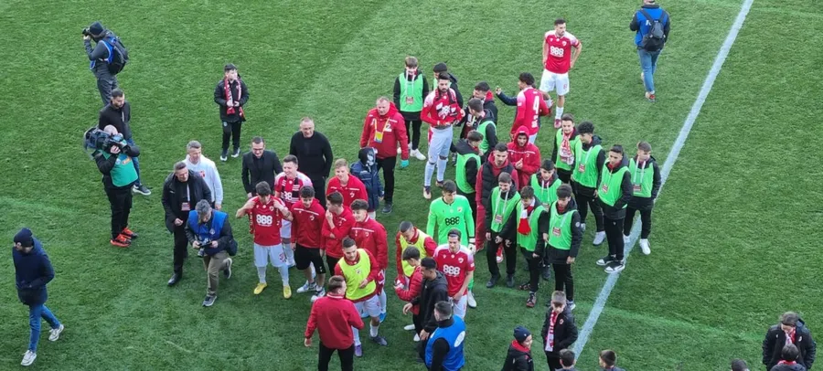 La final, jucătorii și suporterii au sărbătorit minute în șir, iar Ovidiu Burcă s-a uitat spre lojă și șefii i-au făcut semn că sunt calificați, moment în care a fugit spre jucători și spre galerie.