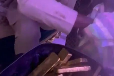 Concret, finanțatorul formației din Gruia are asupra sa mai multe lingouri de aur și îi dă asigurări persoanei respective că va primi în următoarele zile o cantitate impresionantă: 4.000 de kilograme. Alături de el este un individ african îmbrăcat la costum, care umblă într-o pungă pe durata filmării. VEZI VIDEO AICI.