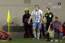 Olteanul nu s-a oprit aici și, după ce l-a doborât pe Ashkovski, l-a lovit puternic cu mingea.