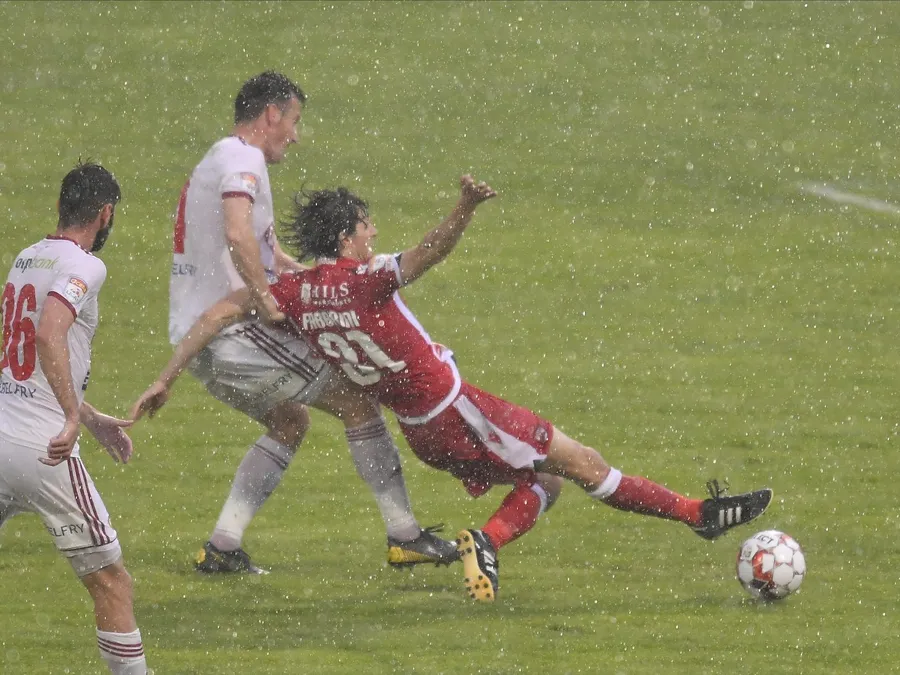 Peste toate a venit și potopul! Pe un adevărat diluviu, Fabbrini a scăpat spre poarta lui Niczuly și a fost pus la pamânt de Răzvan Țincu. Penalty pentru Dinamo și cartonaș roșu pentru covăsneni, care rămân în 10 oameni.