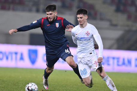Paul Alexandru Iacob si Dennis Man in meciul de fotbal dintre Chindia Targoviste si FCSB, contand pentru Liga 1 Casa Pariurilor, desfasurat pe Stadionul Marin Anastasovici din Giurgiu, luni 2 noiembrie 2020. © FOTO:Razvan Pasarica/SPORT PICTURES