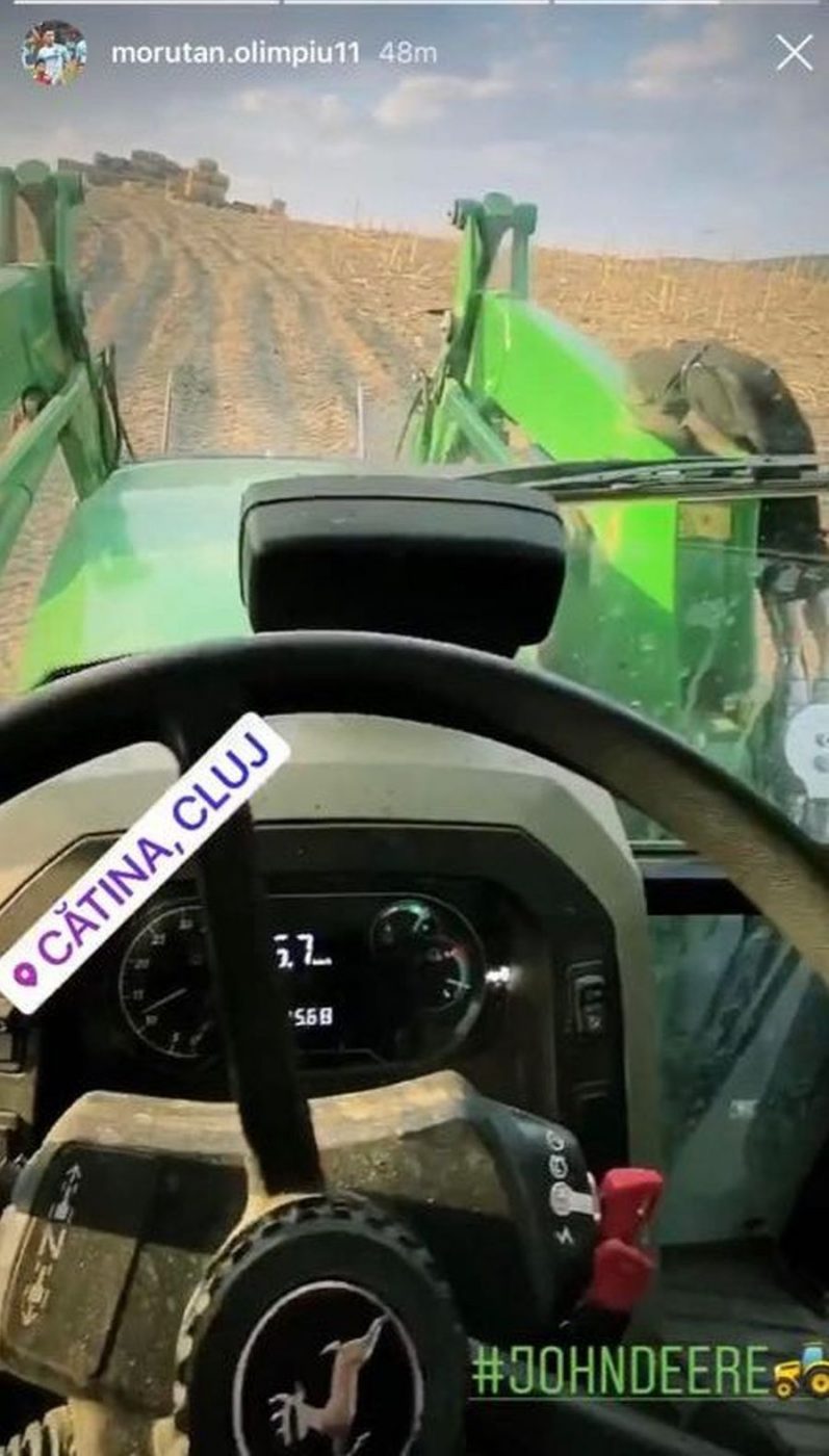 Moruțan s-a fotografiat la cârma unui tractor în localitatea Cătina.