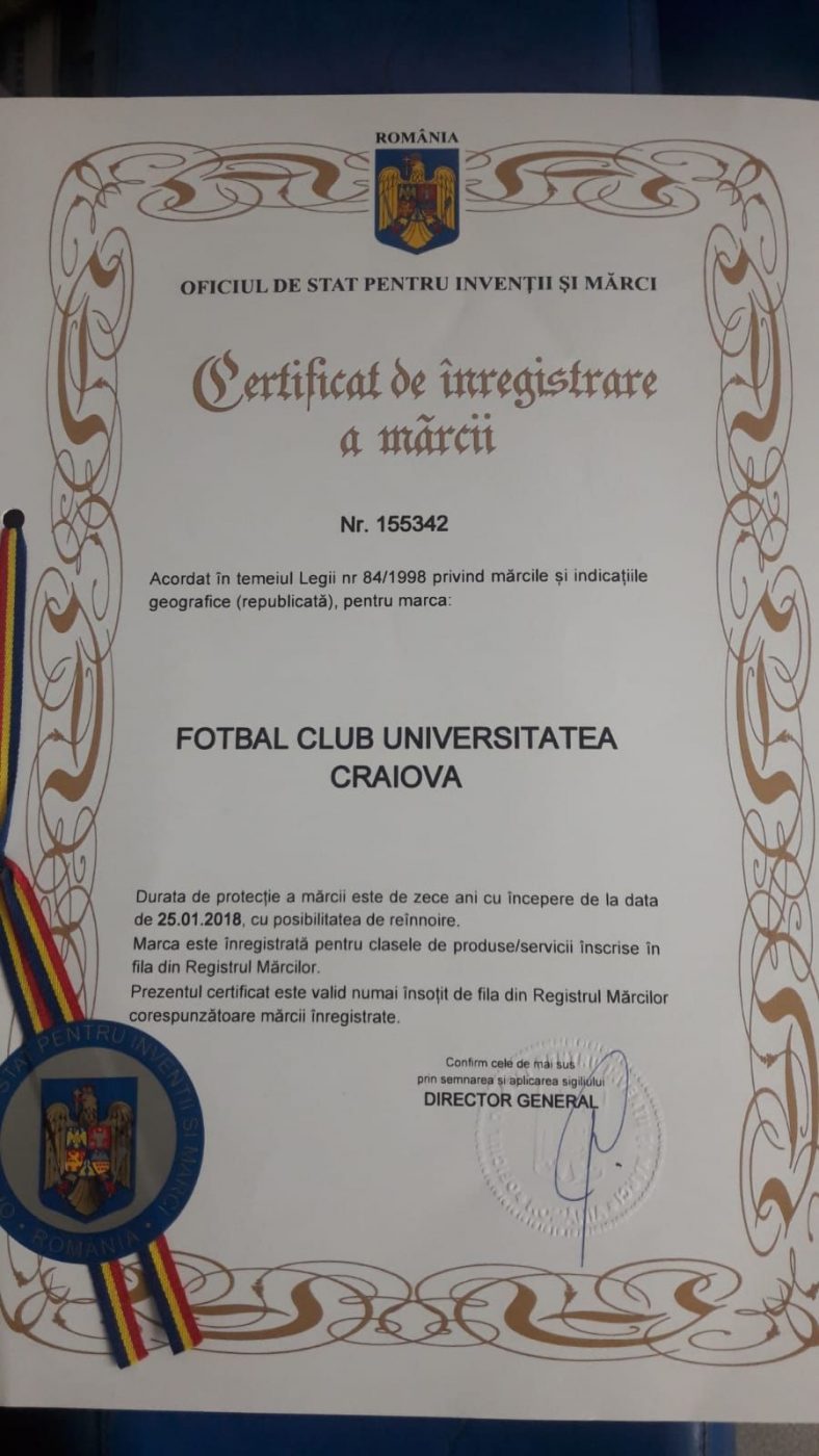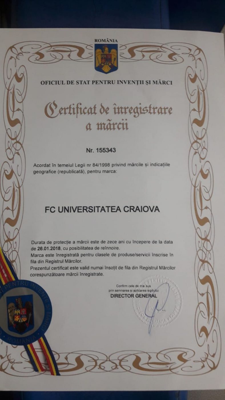 ProSport a intrat în posesia mărcilor depuse de Pavel Badea la OSIM în 2018, iar directorul de la CSU ne-a mărturisit din ce motiv a făcut lucrul respectiv. „Aceste mărci fac parte din patrimoniul Universității Craiova, iar eu mă voi lupta pentru ele și voi avea grijă ca totul să fie ok atât timp cât este nevoie. Sunt sigur că mulți nu au știut de demersul pe care eu l-am făcut”, a spus Badea.