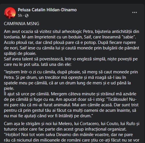 «Hoților! Noi tot vom salva Dinamo din mâinile voastre, dar ne pare rău că niciunul din milioanele de români care știu ce-ați făcut nu se vor mai atinge de vreun lucru care vine din Spania.»