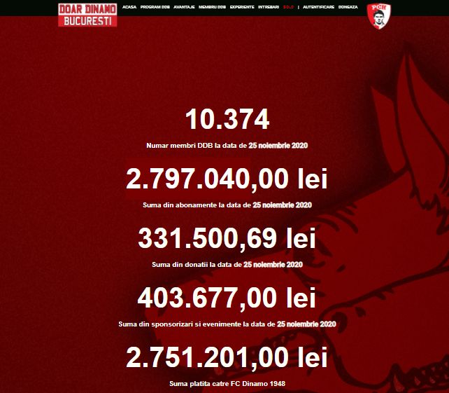 Potrivit cifrelor furnizate de către site-ul oficial al programului „Doar Dinamo București”, suporterii acționari din „Ștefan cel Mare”, au virat în conturile clubului suma de 2.751.201 de lei, adică aproximativ 565 de mii de euro.