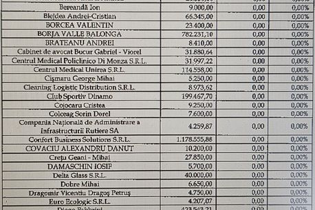 Din cei 30.203.831 lei rămași după achitarea celor două categorii menționate în rândul de mai sus, așa cum ați observat deja, 24.521.135 lei au fost consemnați la categoria creditorilor chirografari. Această categorie, în care au fost prinși foștii jucători, antrenori, oficiali care nu au avut cărți de muncă și multe societăți, nu a mai primit nici măcar un leu!