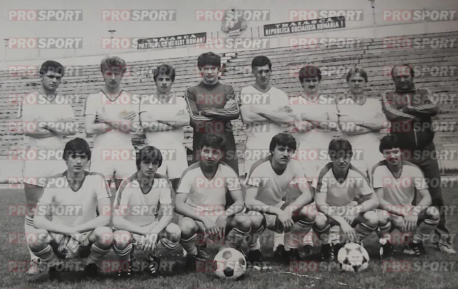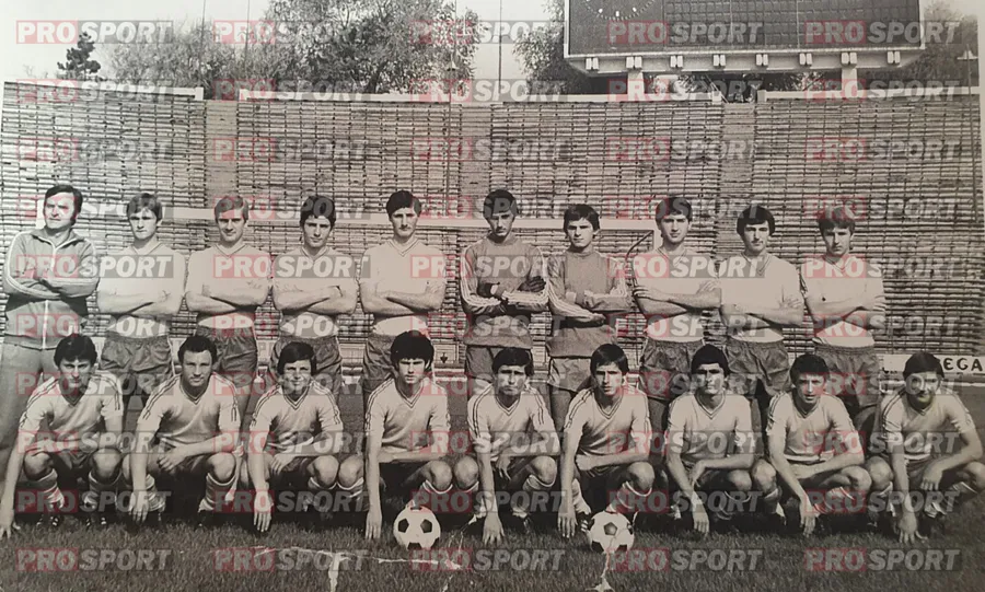 Imagine de pe vechiul ”23 August” cu echipa Luceafărului la începutul anilor ’80: Hagi și Hodină sunt pe rândul de jos (al cincilea, respectiv al treilea de la stânga la dreapta) | Foto: Arhivă personală