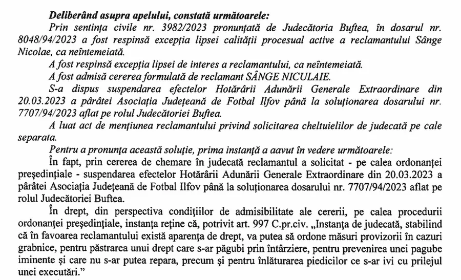 Asociația Județeană de Fotbal Ilfov are procese ai vechi cu Niculaie Sânge, fostul șef al Comisiei de Competiții.
