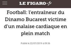 Presa internațională nu a rămas imună în fața problemei de sănătate a antrenorului lui Dinamo, Eugen Neagoe, în timpul meciului pierdut în fața celor de la Universitatea Craiova, scor 0-2.