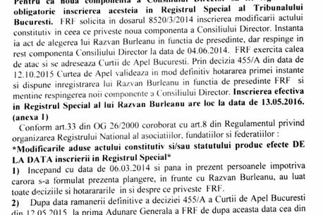Pe listă se află aprobarea unor prime de sute de mii de euro de către Comitetul Executiv care funcționează ilegal, după ce statul român a respins definitiv componența acestuia, dar și finanțarea centrelor de excelență declarate ilegale de MTS, primirea unor cluburi care nu au Certificat de Identitate Sportivă.