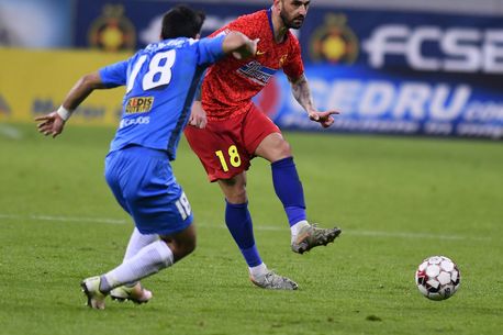 Alexandru Ionut Popescu si Aristeidis Soiledis in meciul de fotbal dintre FCSB si Academica Clinceni, contand pentru Liga 1 Casa Pariurilor, disputat pe Arena Nationala din Bucuresti, luni 10 februarie 2019. © FOTO:Razvan Pasarica/SPORT PICTURES