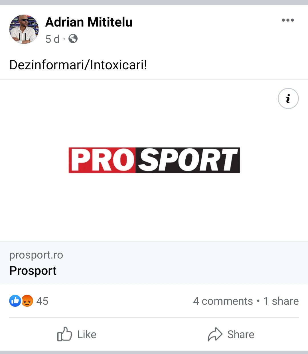 La câteva ore de la apariția articolului, patronul lui FC U Craiova a infirmat informația pe contul său de Facebook, atașând un link către ProSport alături de textul „Dezinformări/Intoxicări!”