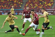 Min. 90+5: Gabi Tamaș sare la cap cu un adversar, însă lovește balonul cu mingea. Arbitrii lasă jocul să continue, sub protestele rapidiștilor.