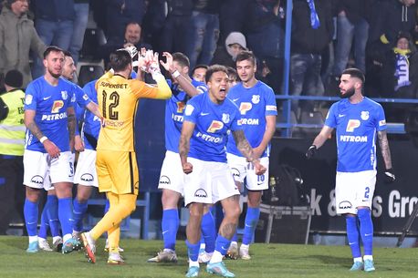 Bucurie a fotbalistilor constanteni dupa un gol marcat cu Sebastian Mladen, Bradley De Nooijer, Dragos Ionut Nedelcu si Radu Stefanita Boboc in meciul de fotbal dintre Farul Constanta si FC Botosani, contand pentru Liga 1 Casa Pariurilor, desfasurat pe Stadionul central al Academiei Gheorghe Hagi din Ovidiu, joi 3 martie 2022. © FOTO:Razvan Pasarica/SPORT PICTURES