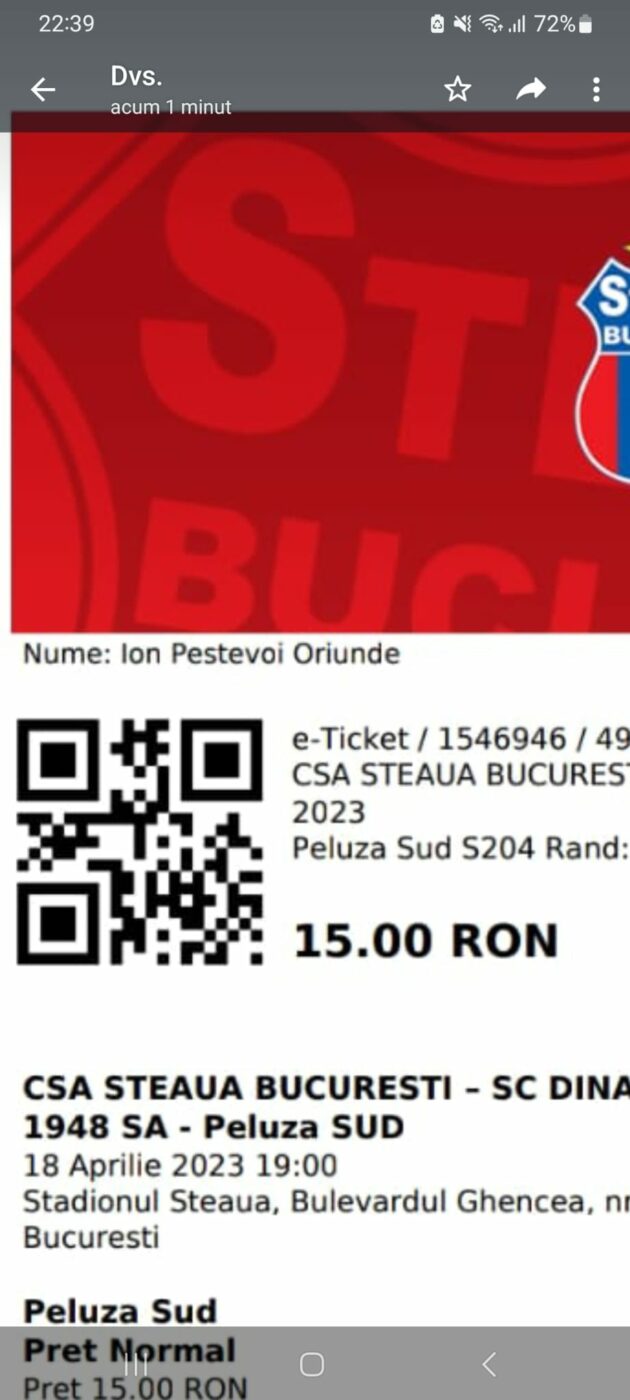 Astfel, cine vrea să meargă la meci poate profita de „cadou”, putând folosi codul QR. Pentru ca fanii Stelei să poată prinde un bilet în peluză online prin metoda obișnuită, ultrașii roș-albaștrilor s-au prins de aroganță și au blocat accesul în peluza lor.