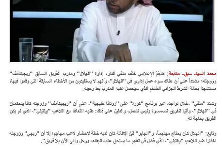 Articolul apărut pe site-ul sabq.org în care familia Reghecampf este acuzată că a căpușat Al Hilal