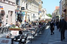 Patronii de pub-uri din centrul Brașovului sunt beneficiarii lipsei de interes a tineretului pentru fotbalul local. Vânzările merg strună, după venirea căldurii.     FOTO: Alexandru Hojda
